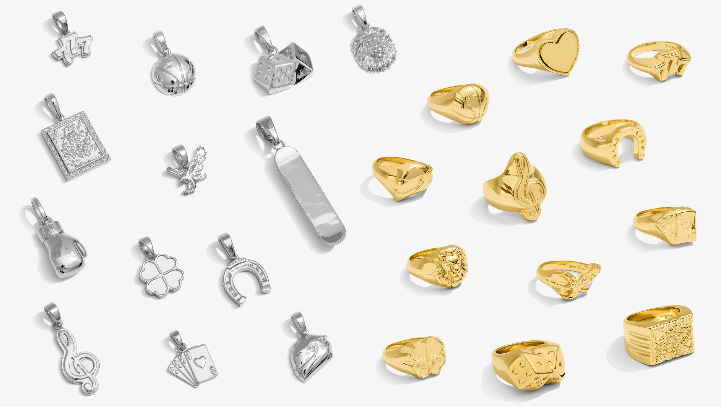 Everyday objects, refined. Brushed steel money clips engraved with individual statements. Solid 925 sterling silver chains and bracelets in clean paperclip, rope and rolo forms, balanced in weight and built to live on the body. Pendants and signet rings in polished silver and gold tones rework classic symbols. Simply a curated collection of pieces designed to be worn daily.