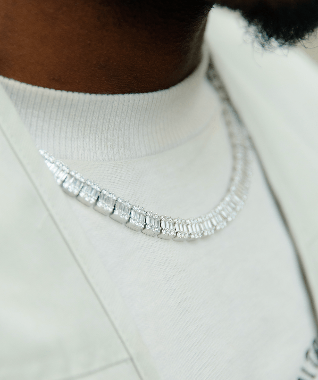 Baguette Tennis Chain in White Gold
