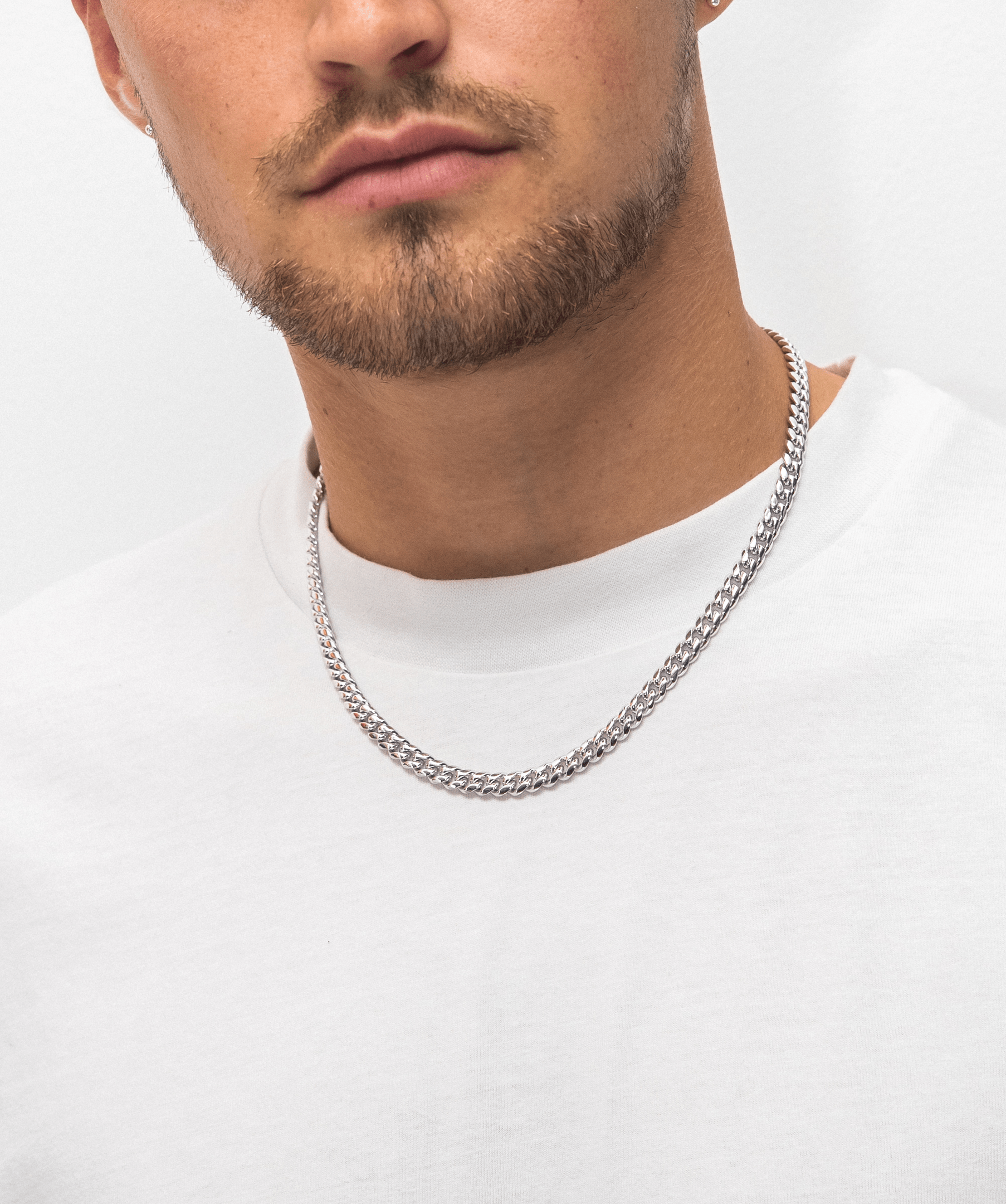 16mm Oval Baguette Cuban Link Chain (White Gold)