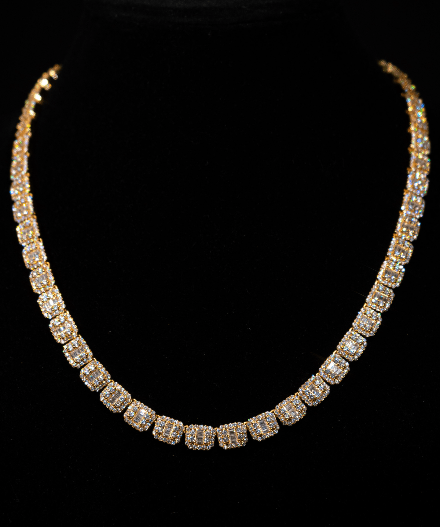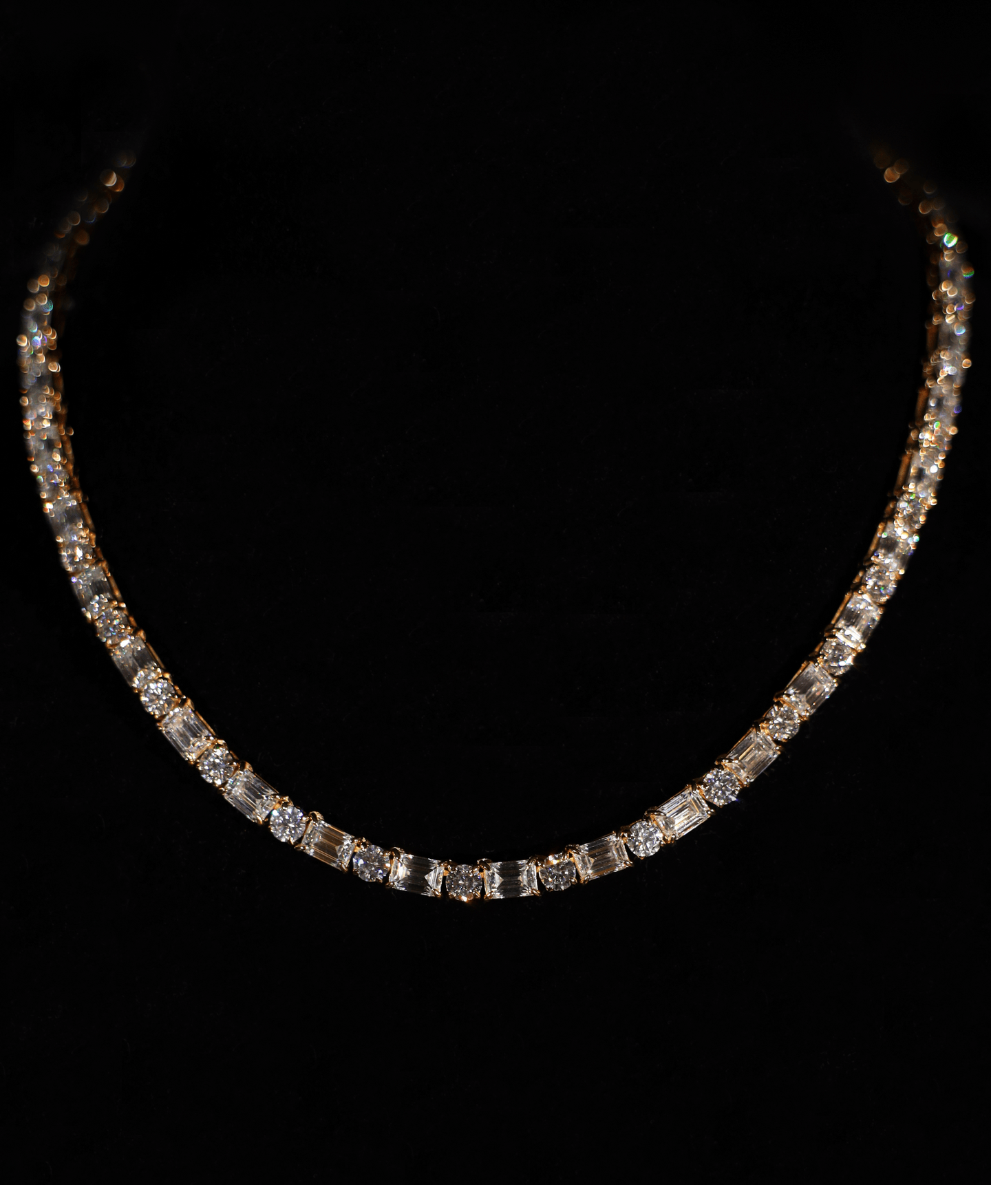 5mm Round & Emerald Cut Tennis Necklace (Gold)