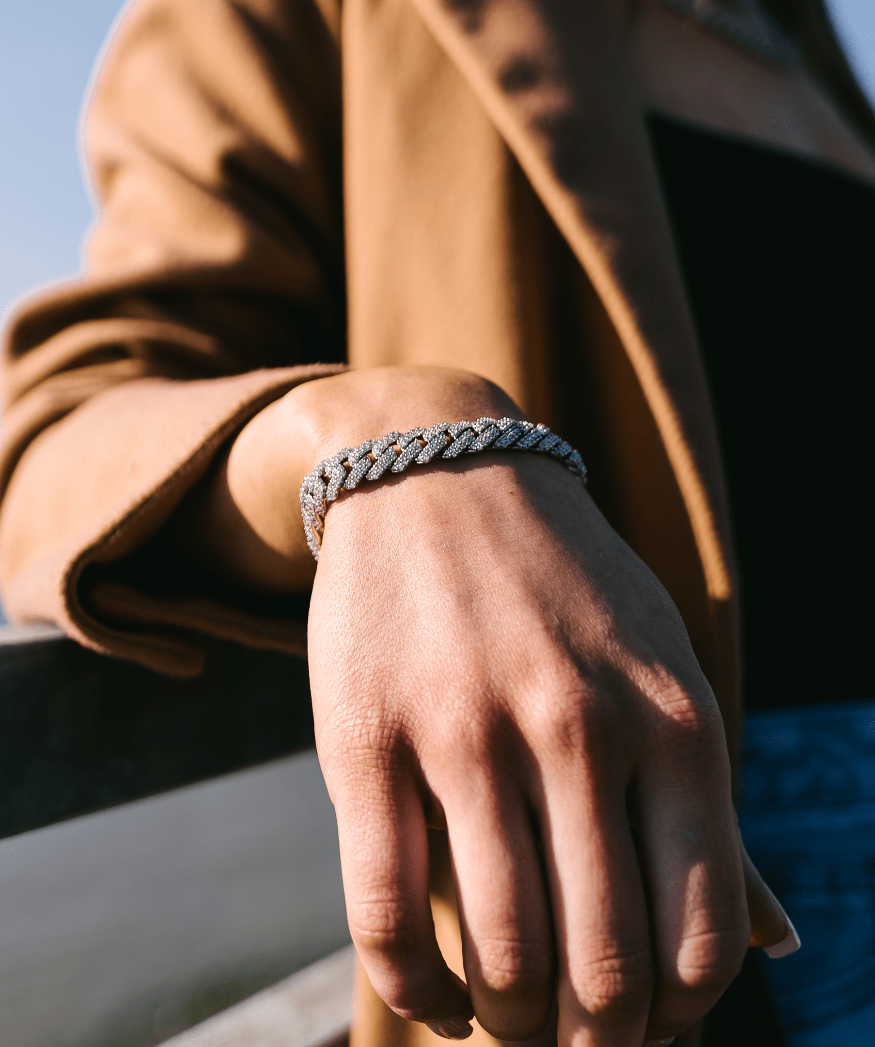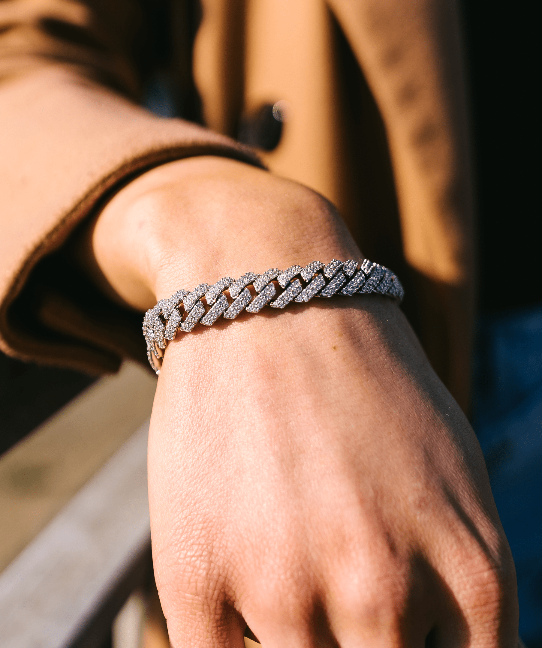 Our new and exclusive 10mm Diamond Prong Link Bracelet is the a must-have for your jewelry collection. Made using real 18k gold and fully iced out using the clearest round-cut stones in the game, this bracelet will reflect an unparalleled and near-blinding shine.