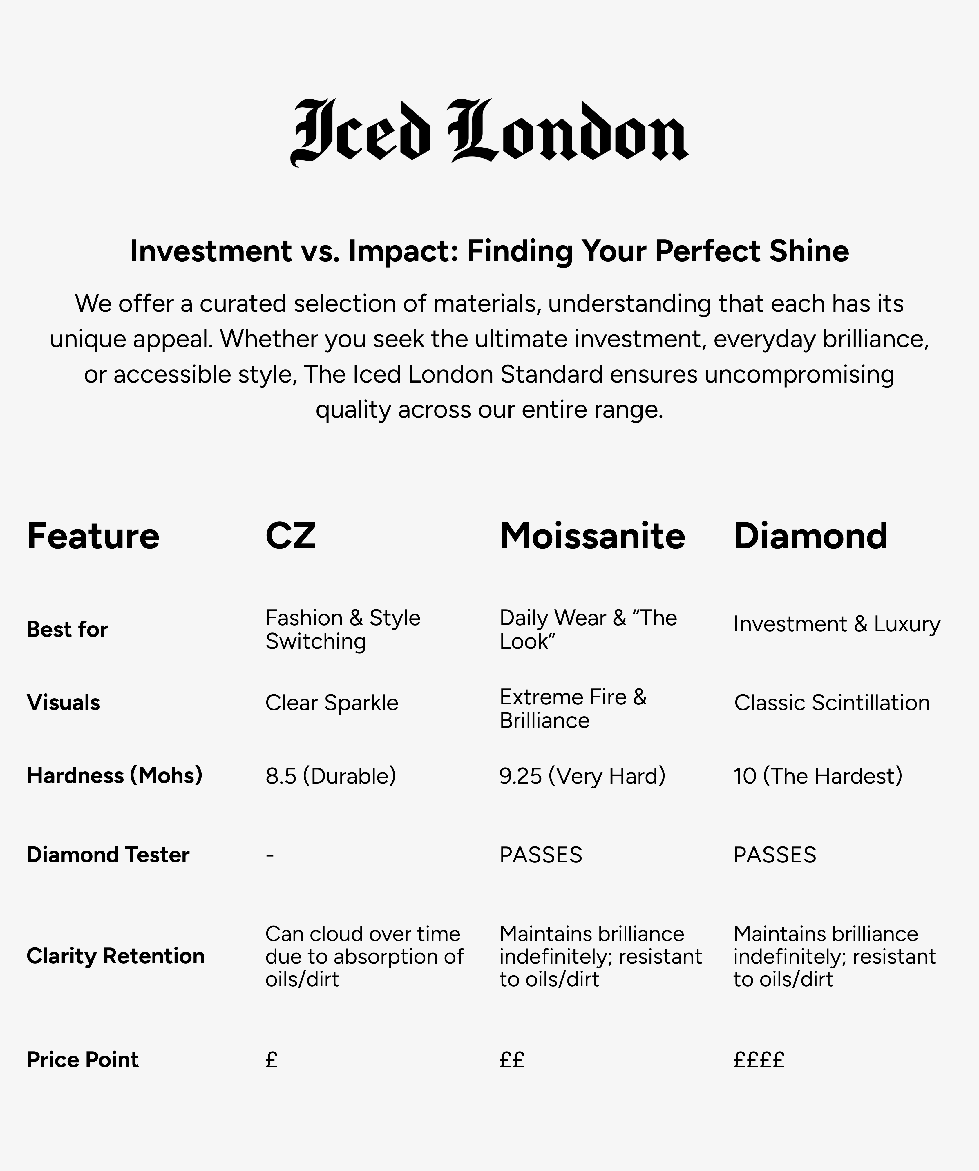 The Result: A piece that looks, feels, and shines identical to a high-end gold and diamond piece. You aren't just buying a chain; you are buying into the Iced London standard of quality and community.