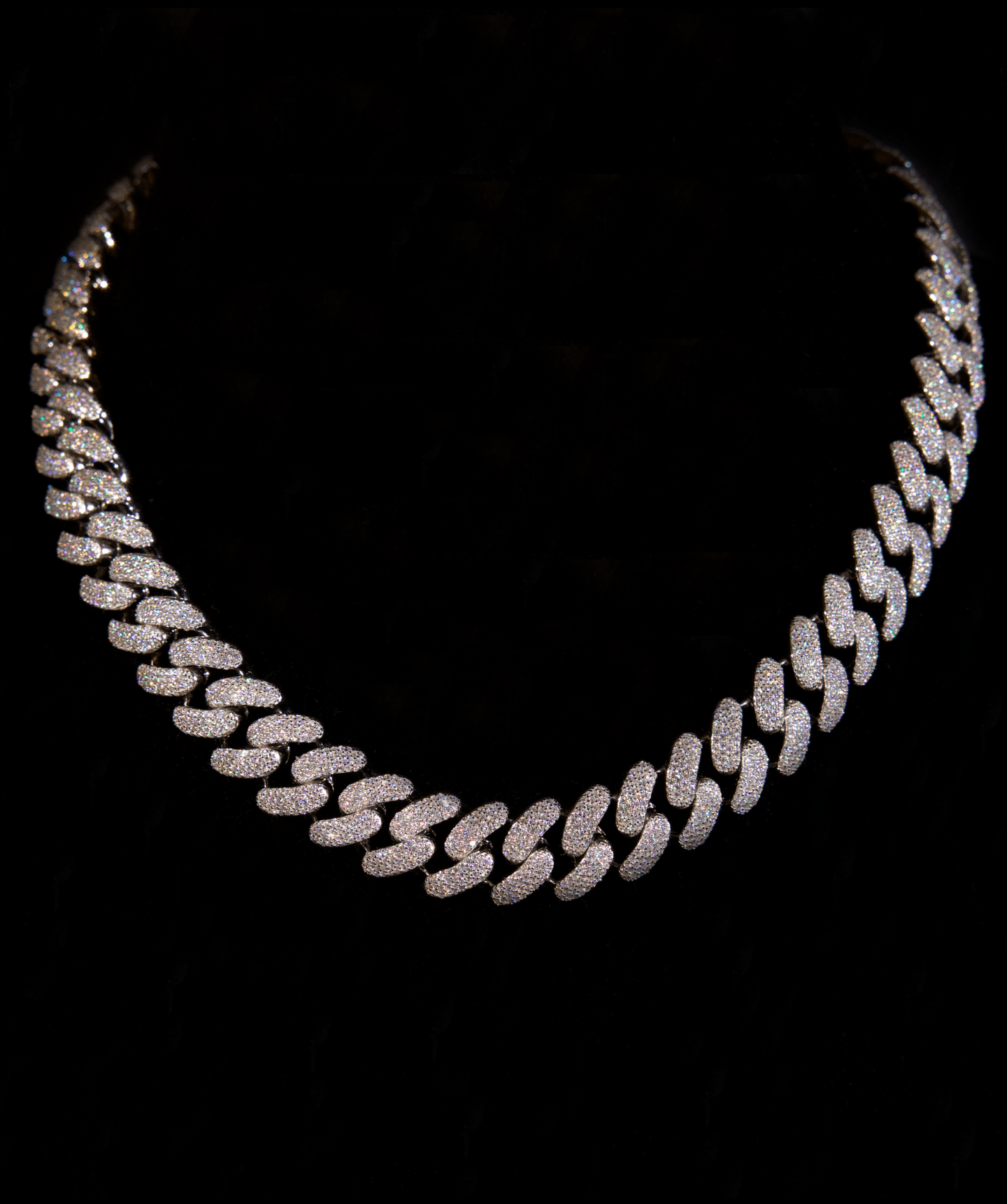 The 15mm Miami Cuban Link Chain is a statement in its purest form. A wide-set, pavé design with meticulously handset stones, ensuring maximum fire and brilliance. Designed for those who value presence and precision, this chain speaks for itself in any setting.