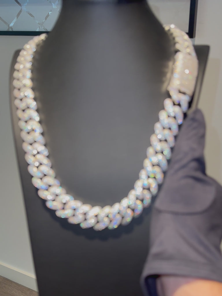 The 18mm Miami Cuban Link Chain is a bold declaration of prestige and craftsmanship. A flawless pavé setting amplifies the brilliance of each meticulously handset stone, creating an endless flow of fire and radiance. Engineered for presence and power, this heavyweight masterpiece is an icon of elevated luxury, designed for those who command attention.