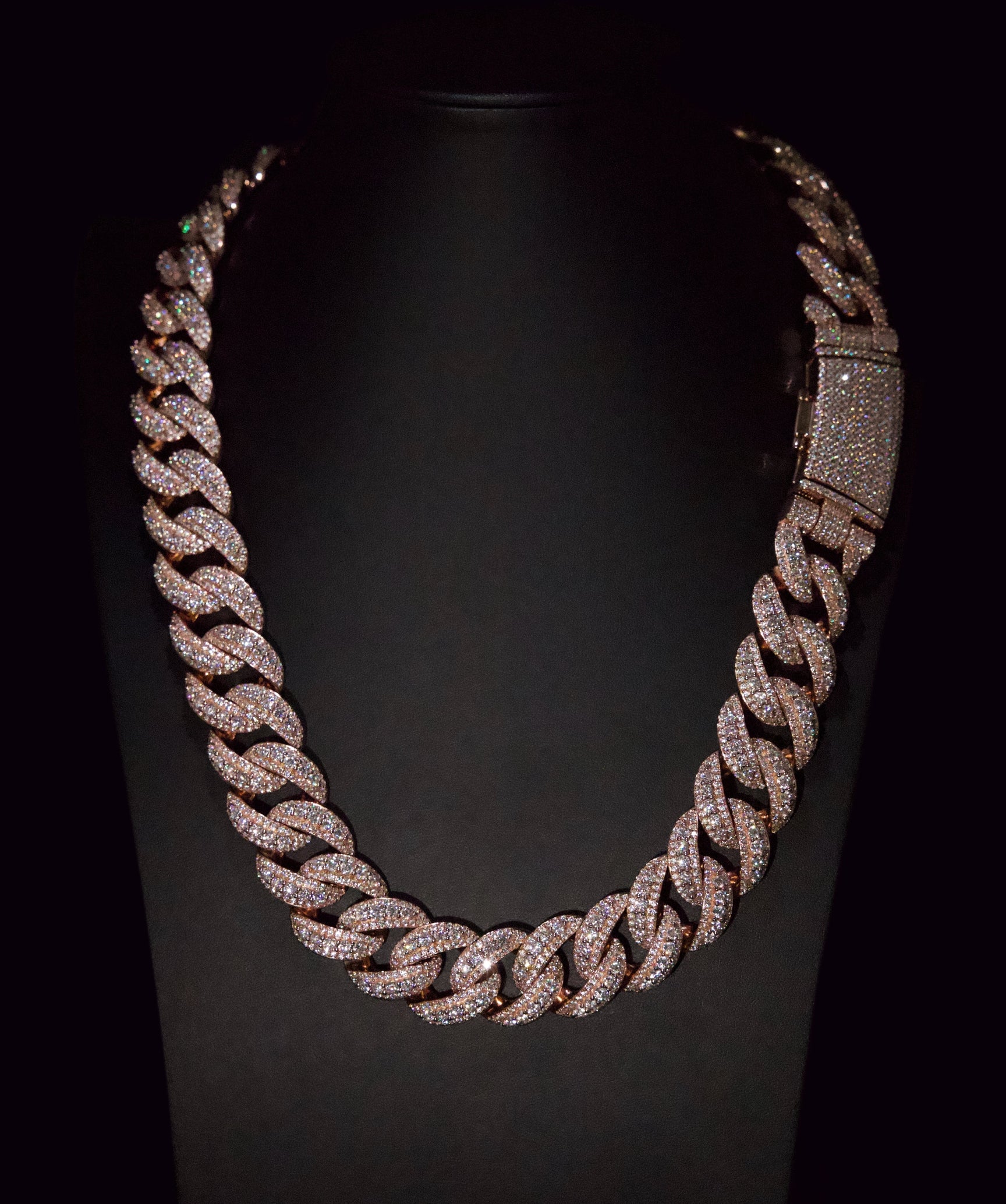 The Iced London 20mm Raised Pointer Cuban is the ultimate statement of power. Each oversized link is hand-set with VVS clarity stones, featuring a raised prong setting that maximises light reflection from every angle.