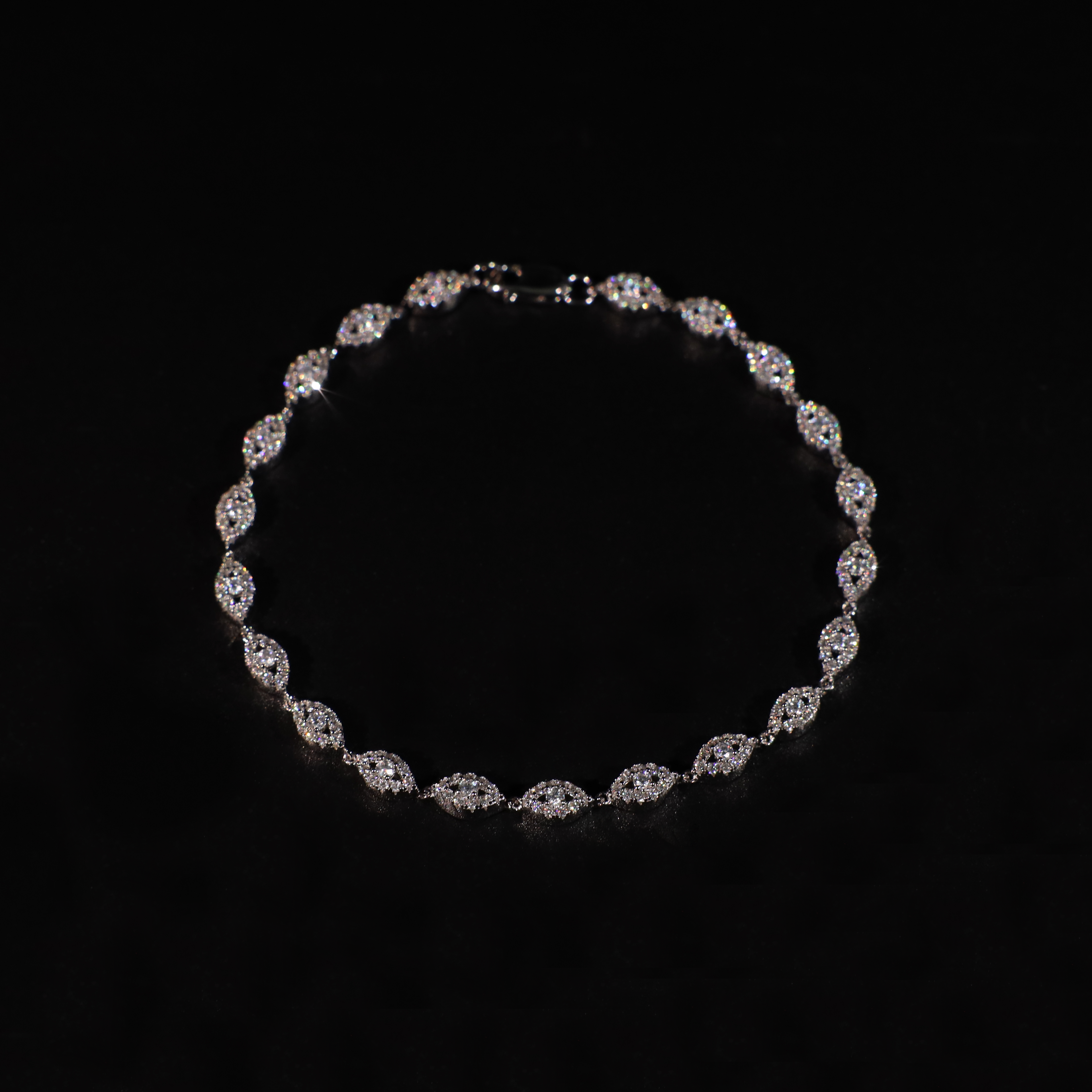 Designed with precision, this intricate arrangement of stones captures light from every angle, delivering an understated yet commanding presence.