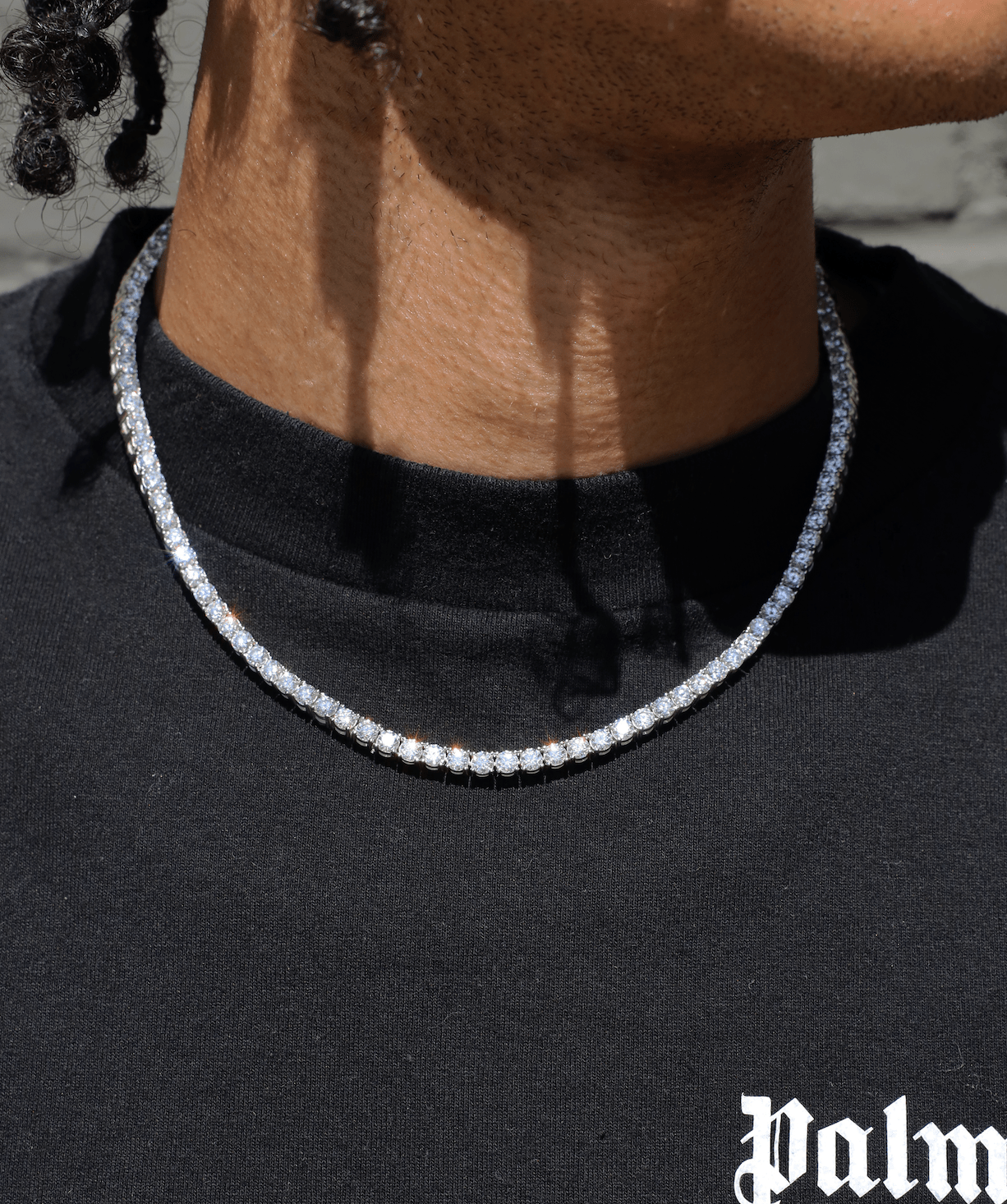 The ICED LONDON Tennis Chain is designed for those who appreciate clean, refined luxury. Set in solid 925 silver, each VVS Moissanite stone delivers exceptional clarity and shine. The classic design ensures versatility, whether worn alone or layered. Finished with a box clasp and safety latch for a secure fit.