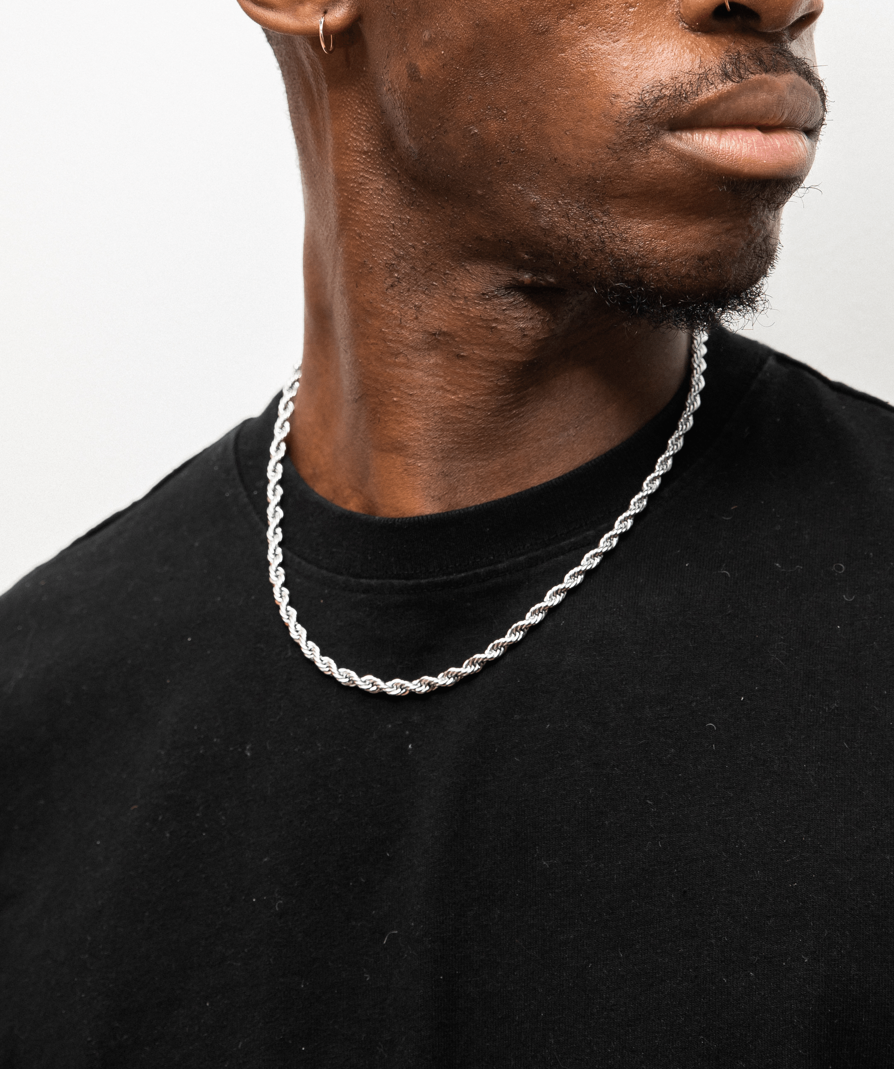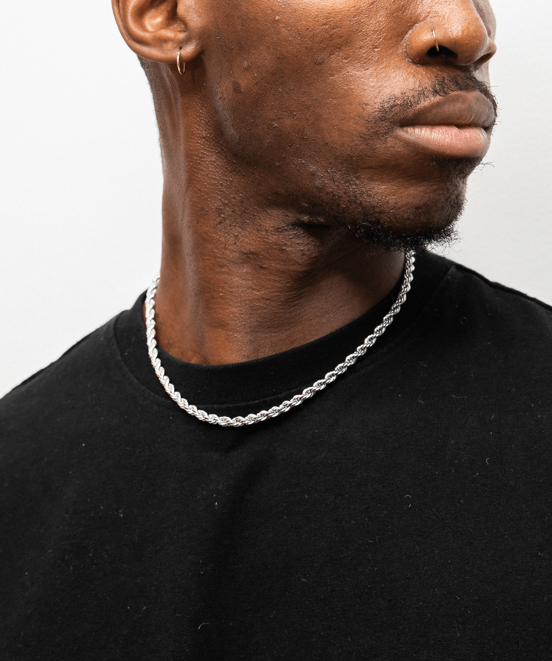 Start your chain collection with our white gold 5mm Rope Chain. This chain boasts the perfect weight and shine for the piece you’ll wear day after day. Make it the staple in your collection.