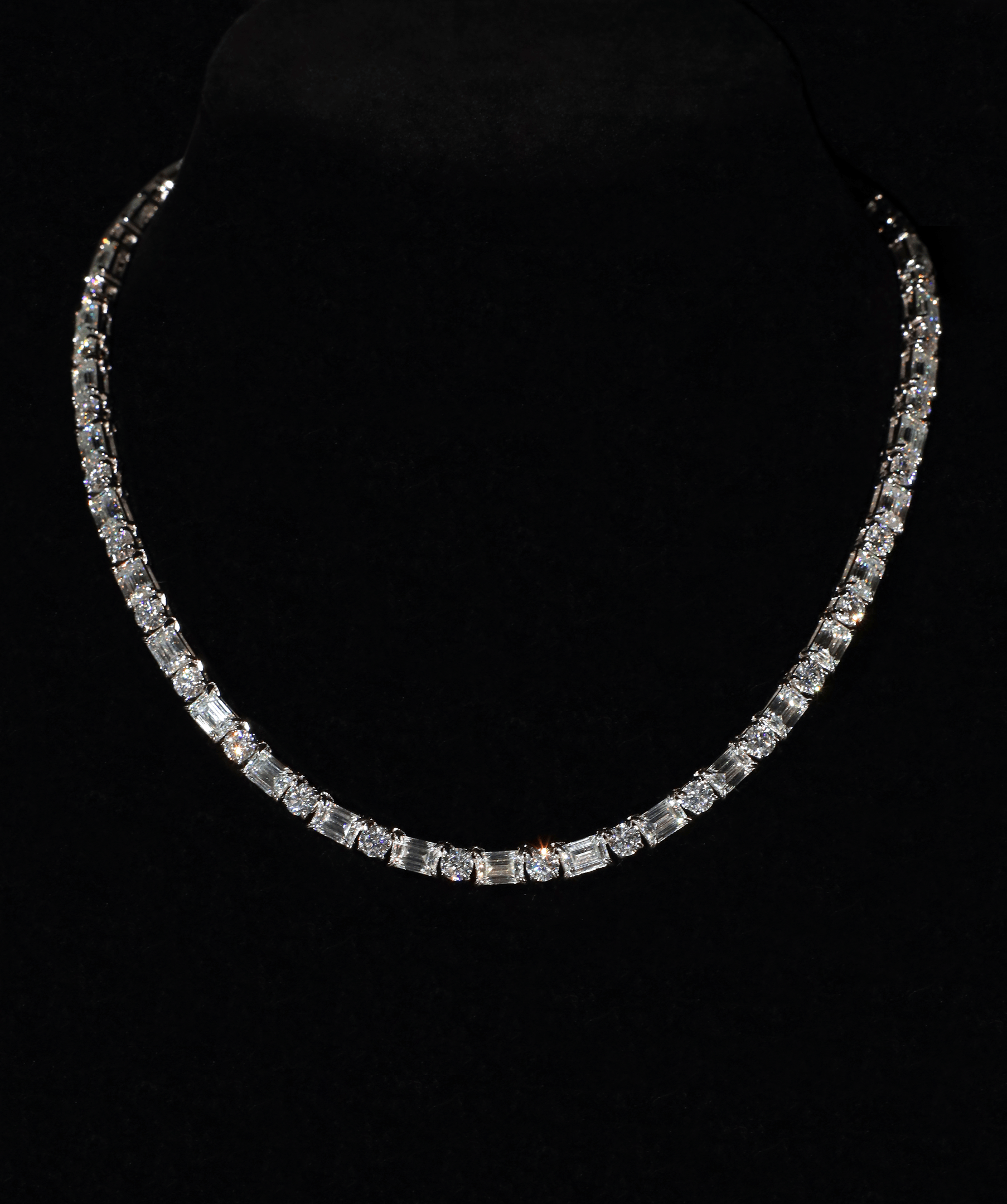 5mm Round & Emerald Cut Tennis Necklace (White Gold)