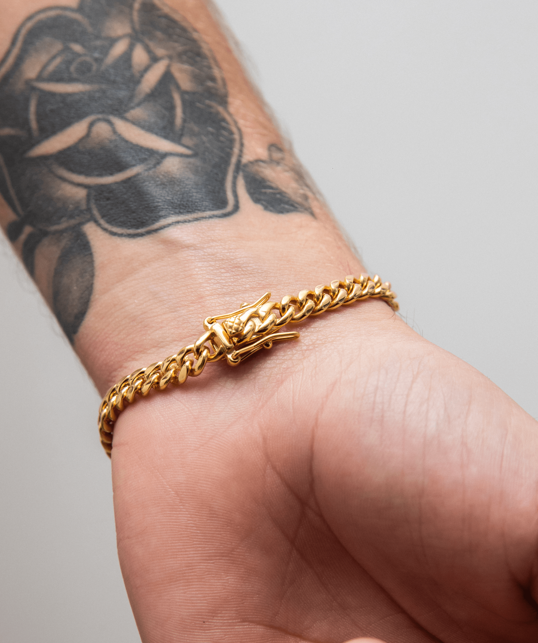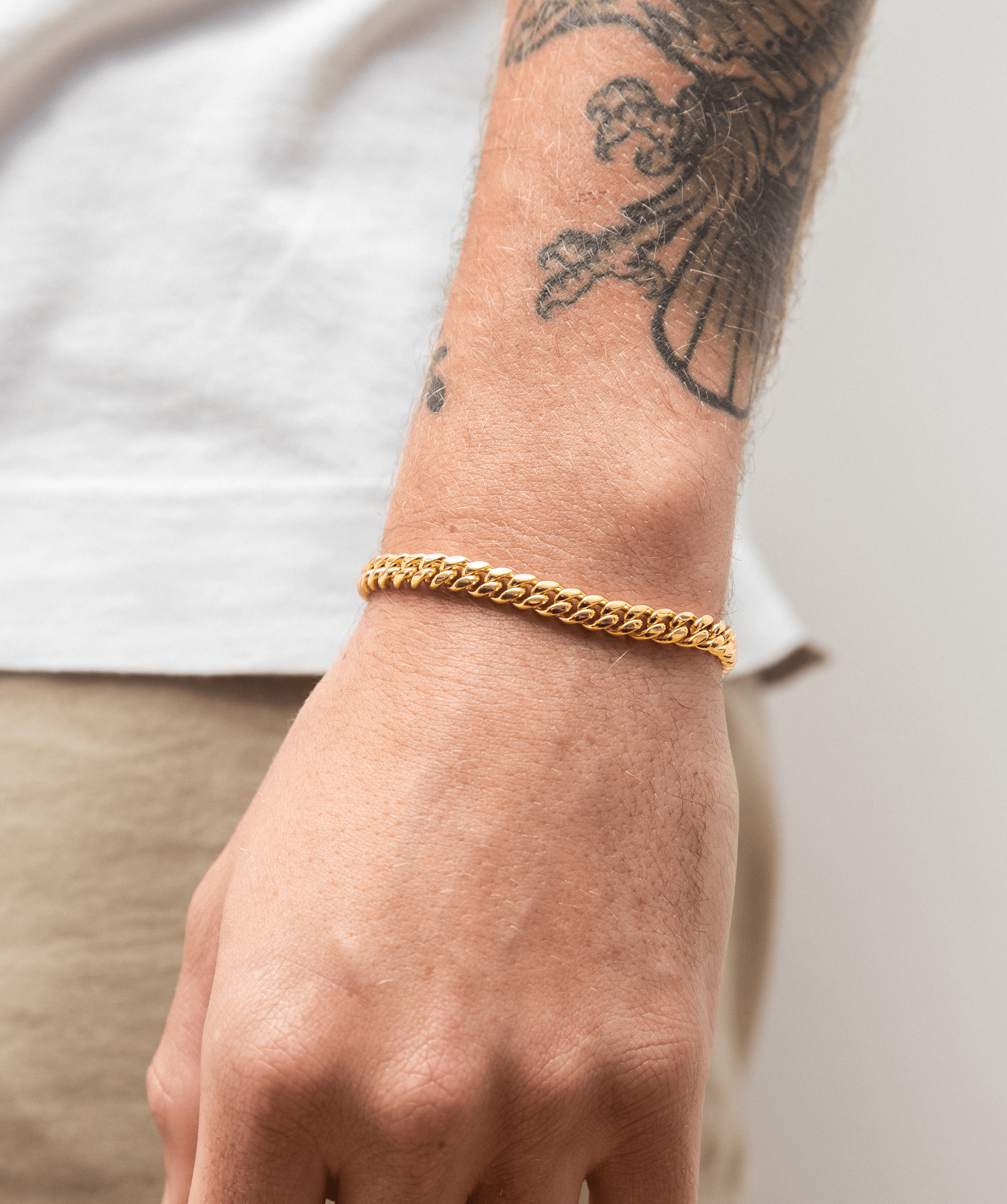 Our 6mm Cuban Link Bracelet delivers clean, understated style with durability you can trust for everyday wear. Crafted from 316L stainless steel and finished in a thick layer of 14k yellow gold, it’s designed to keep its shine through whatever the day throws at you. Lightweight, resilient, and always ready to stack or stand alone.