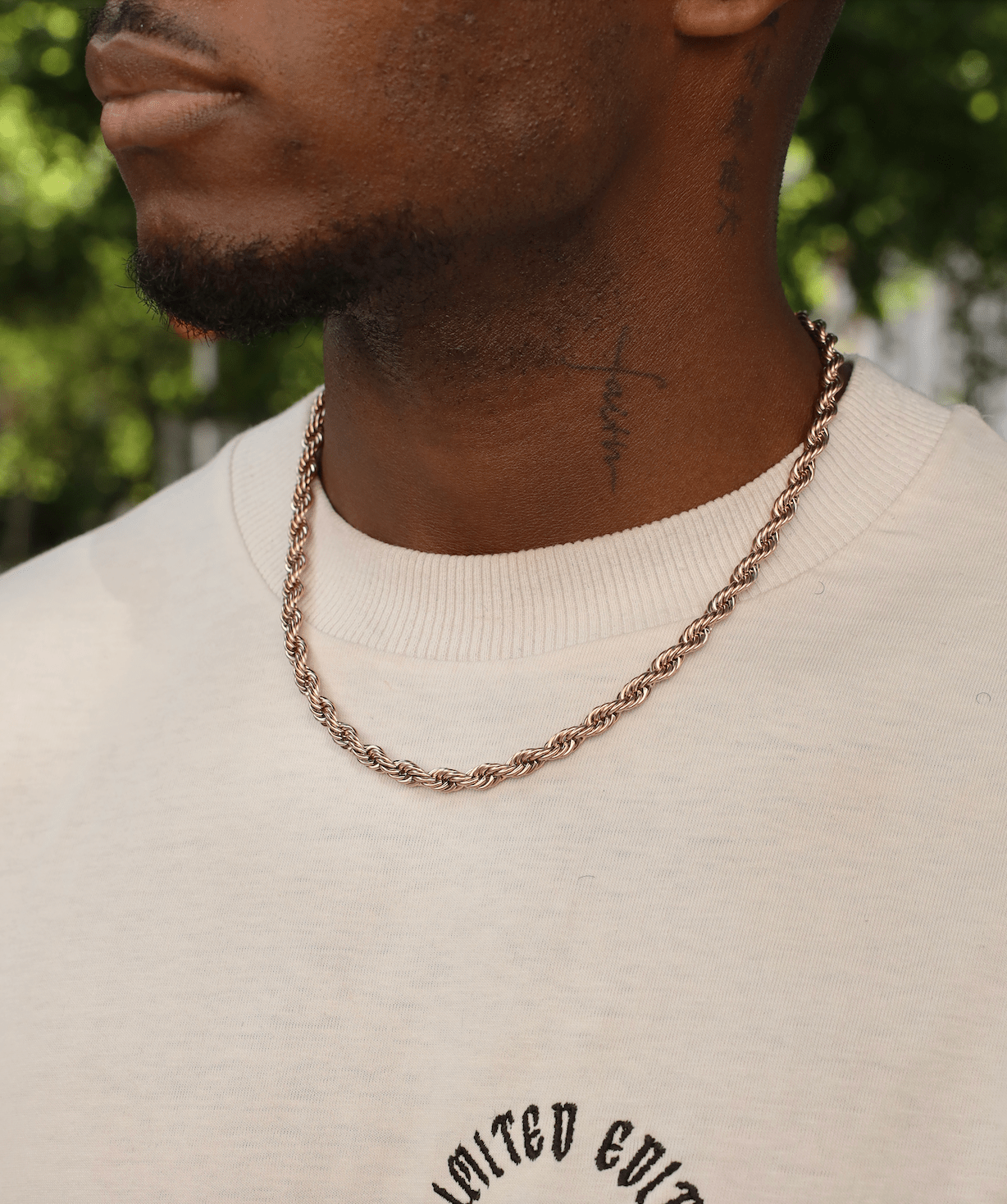 A bold take on a timeless classic, the 6mm Rope Chain showcases its signature twisted design, reflecting light from every angle. Versatile and effortlessly stylish, it’s the perfect foundation piece for any collection.