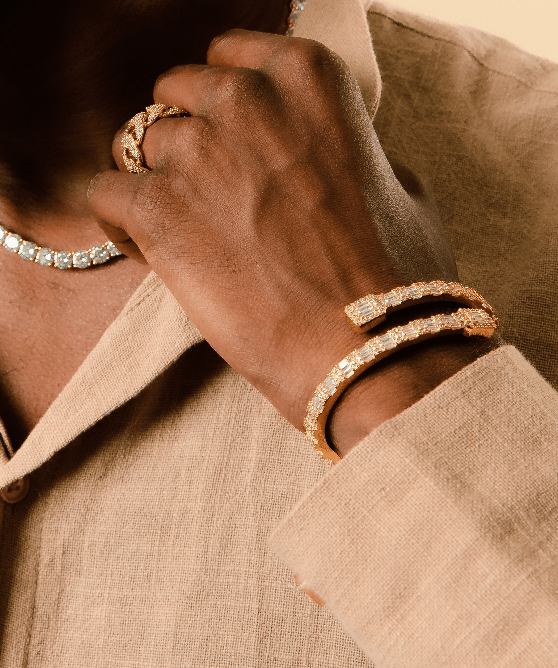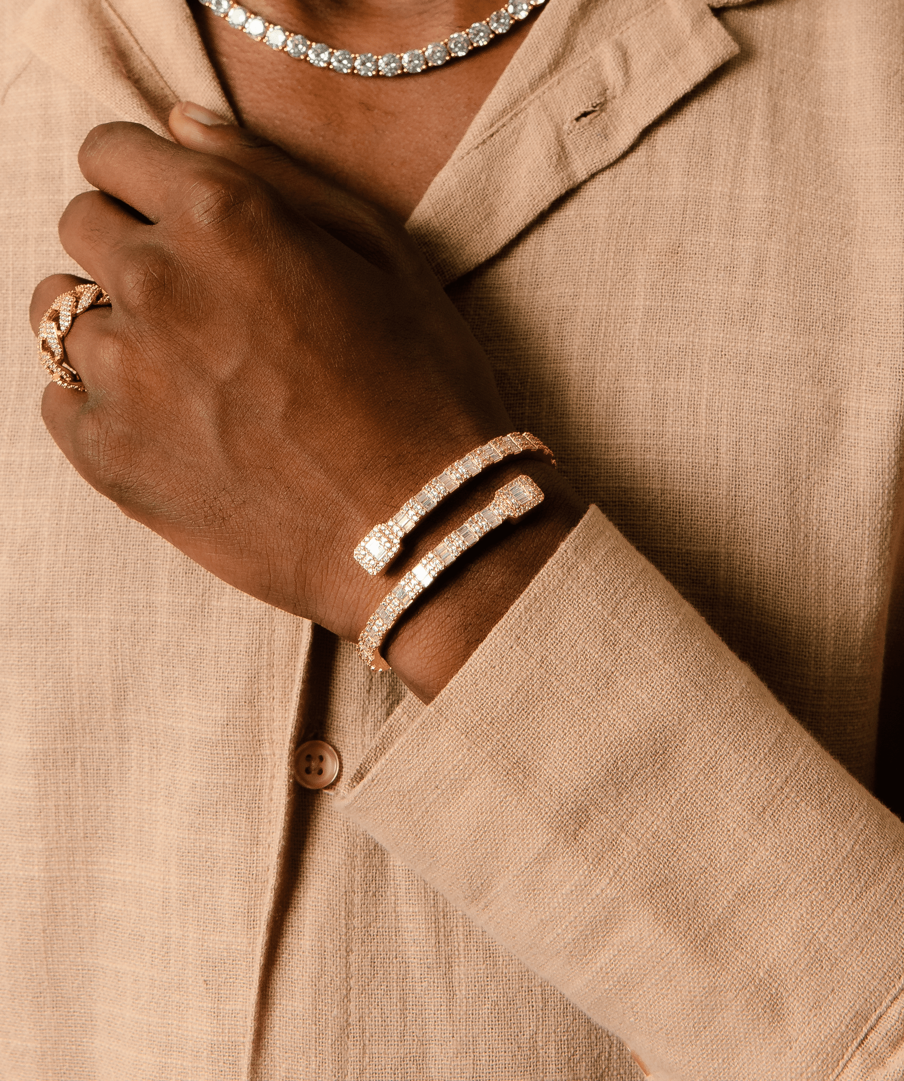 - Baguette-cut VVS Moissanite for a sharp, structured aesthetic