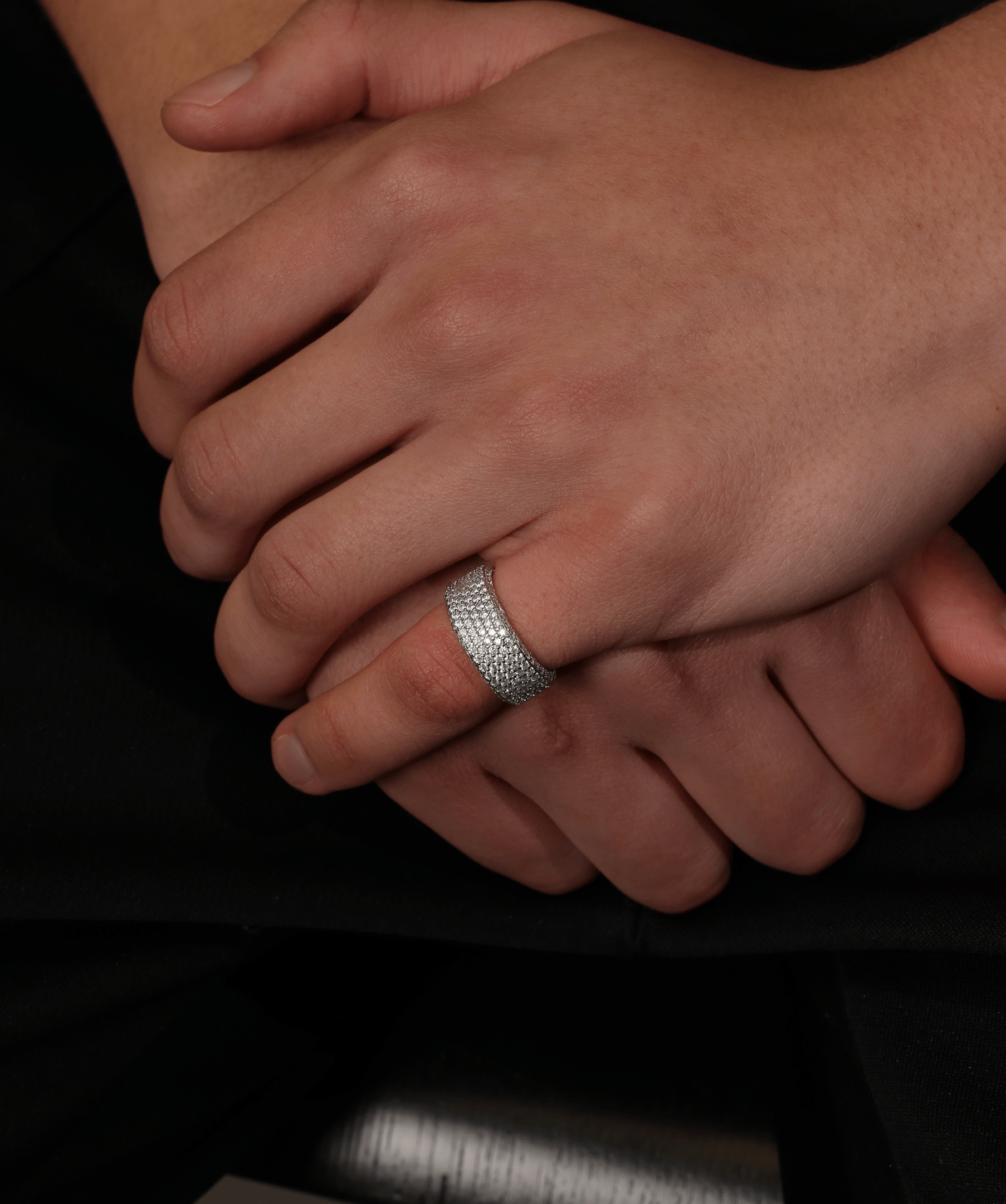 Crafted to embody permanence and prestige, the Eternity Band Ring represents more than just a piece of jewellery—it is a declaration of refinement and distinction. Every stone is meticulously set to achieve an unbroken symphony of sparkle, ensuring that light dances effortlessly across its surface. Its generous 9mm width creates a powerful presence on the finger, striking the perfect balance between boldness and sophistication. Designed for those who appreciate precision and craftsmanship, this piece carries the signature ICED LONDON engraving inside, a discreet mark of exclusivity. Whether worn alone or stacked, it remains an undeniable symbol of status, taste, and the pursuit of excellence.