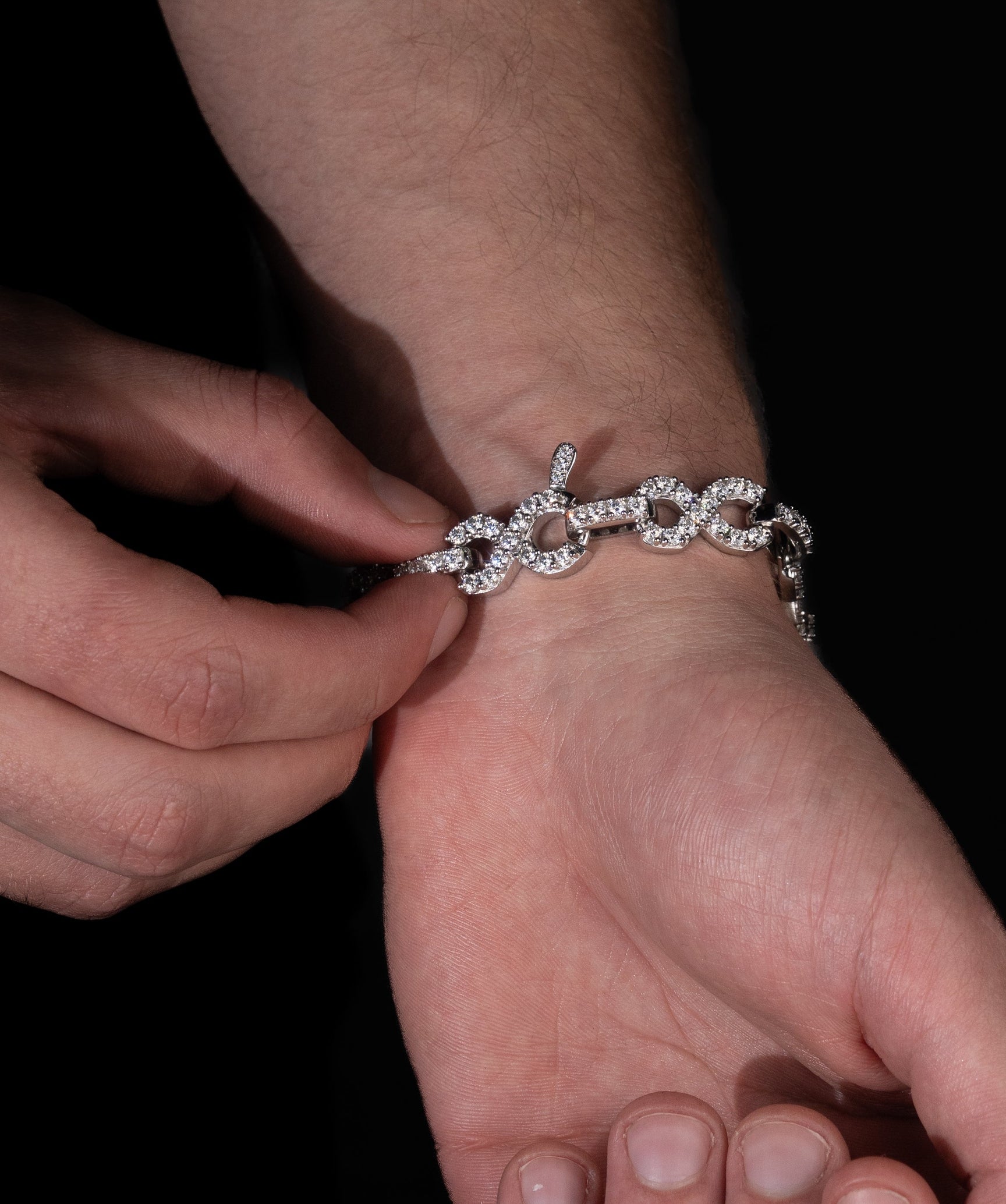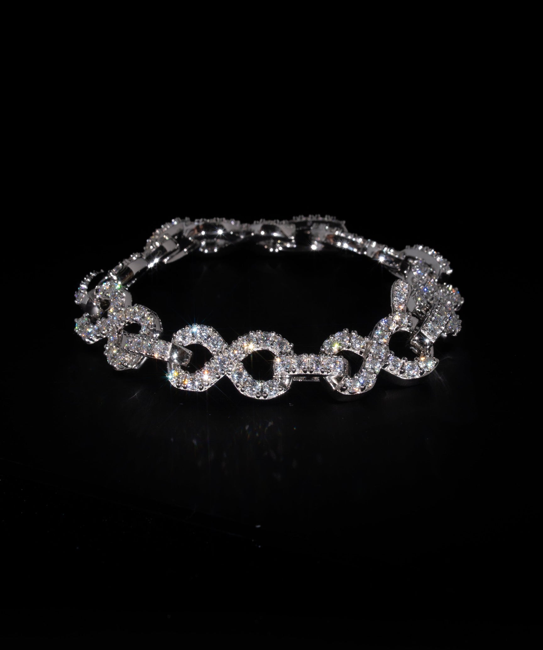 A continuous expression of connection and precision, the ICED LONDON Infinity Link Bracelet stands apart with its interlocked silhouette and bold fluidity. Each stone is meticulously handset to accentuate the flowing pattern, delivering striking brilliance from every angle.