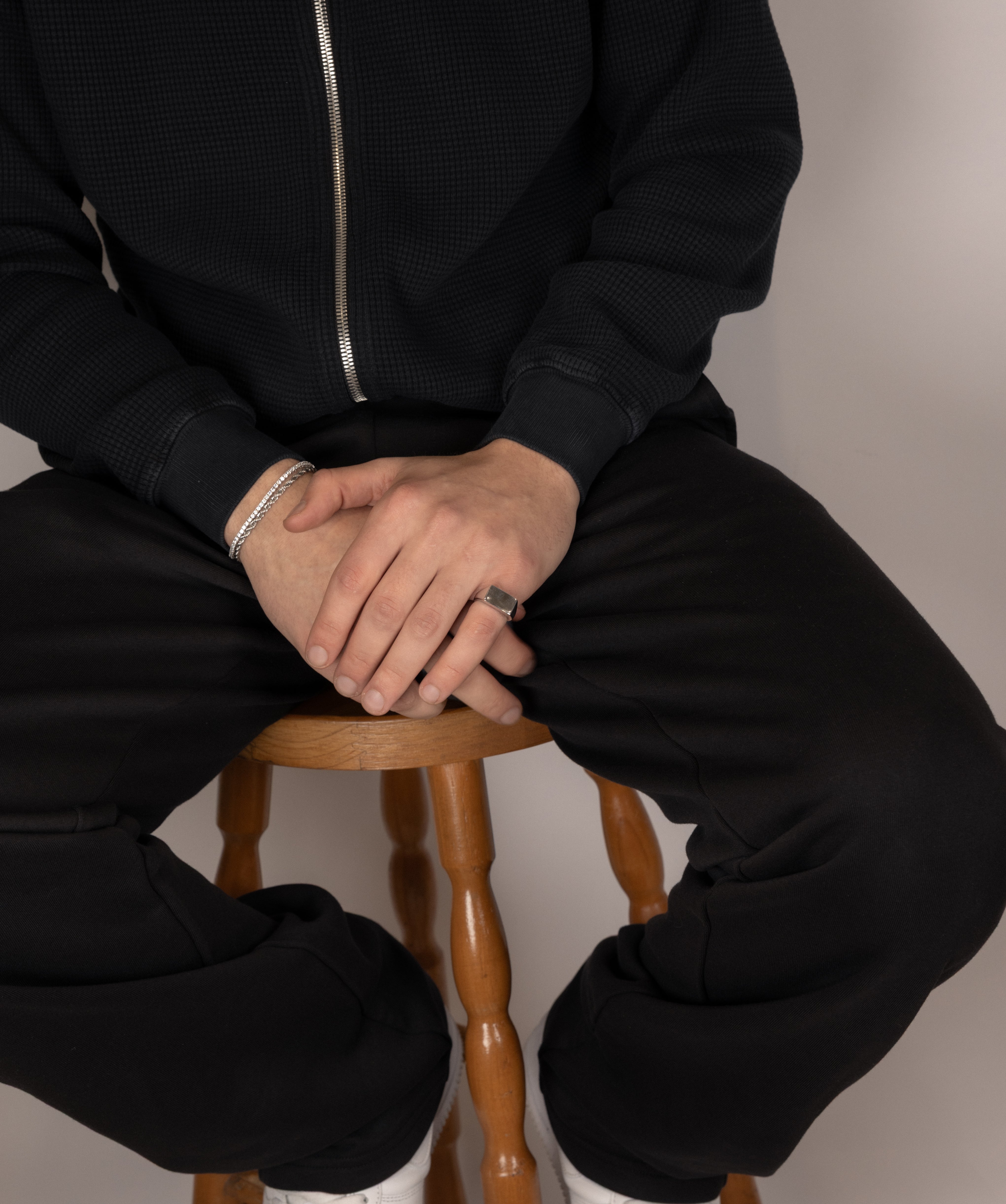 Formed in 925 silver and rhodium plated, its flat surface creates a bold, modern statement grounded in timeless design.