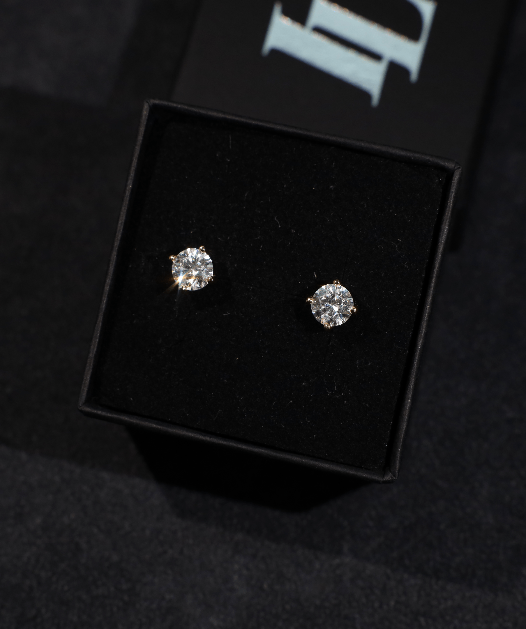 The solitaire stud earrings are a foundation of understated luxury. Each earring features a singular stone, set in 925 silver with rhodium plating for a flawless, enduring finish. With its refined design, this piece enhances any look with a sharp brilliance that speaks for itself. Available in multiple sizes, offering versatility for both subtle accents and bold expressions.